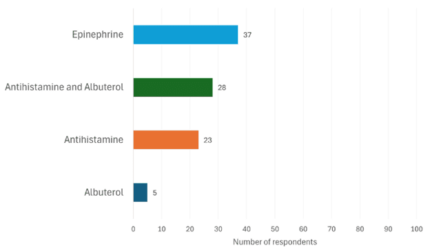 Although 95% of the respondents in the study were prescribed epinephrine and 73% said they were comfortable with recognizing anaphylaxis symptoms, only 14% of respondents said they were very likely to use epinephrine first for anaphylaxis. The following were barriers to using epinephrine: